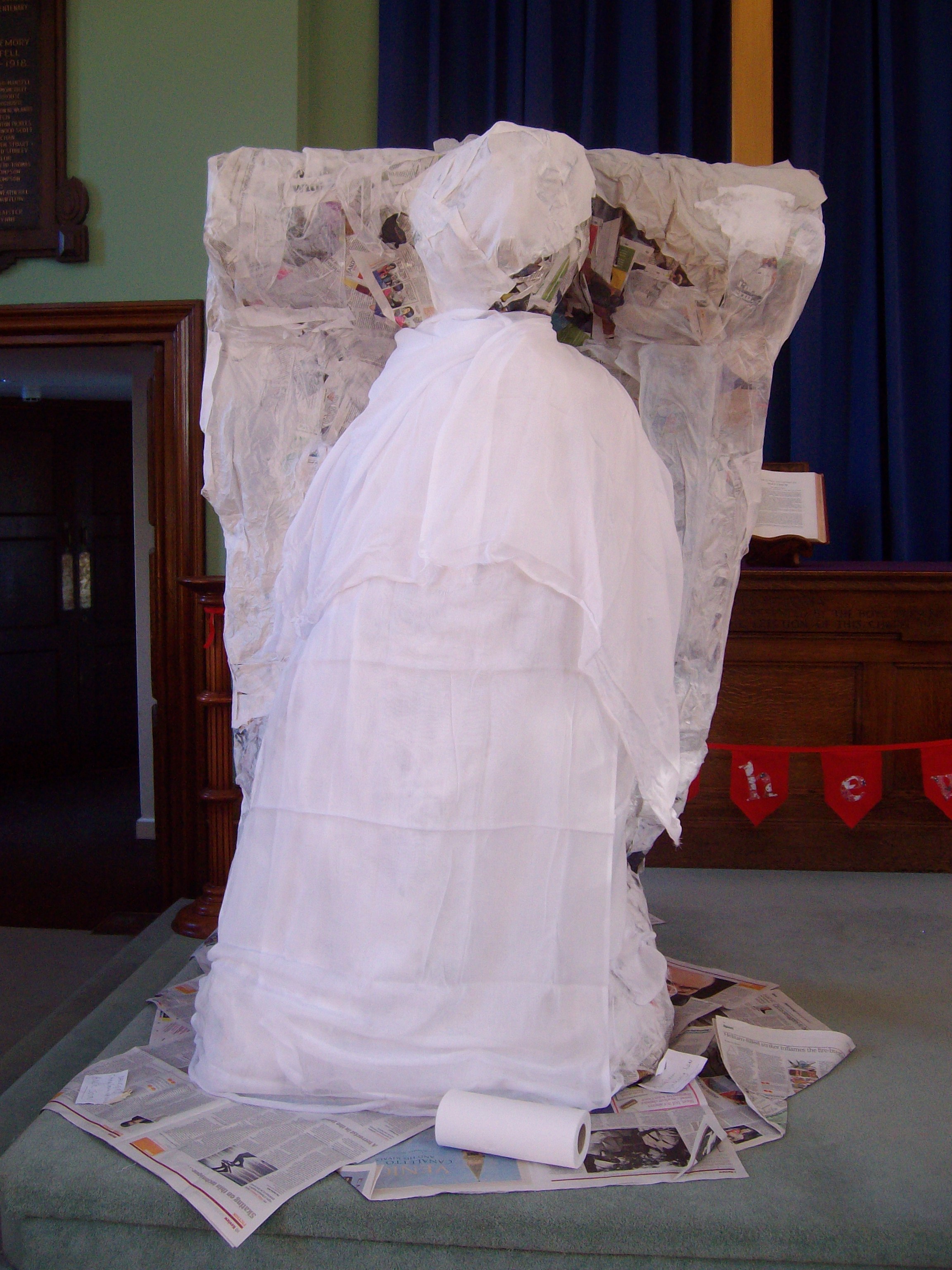 There are many ways of telling God’s story and telling Our Story. A good way of doing this can be to get a whole group of people involved in a communal craft project at a particular time of year. This material explains how to make a giant angel for Advent/Christmas as a communal project.You can download jpg images of the project by clicking the images below and then right click the image and select "Save image as"